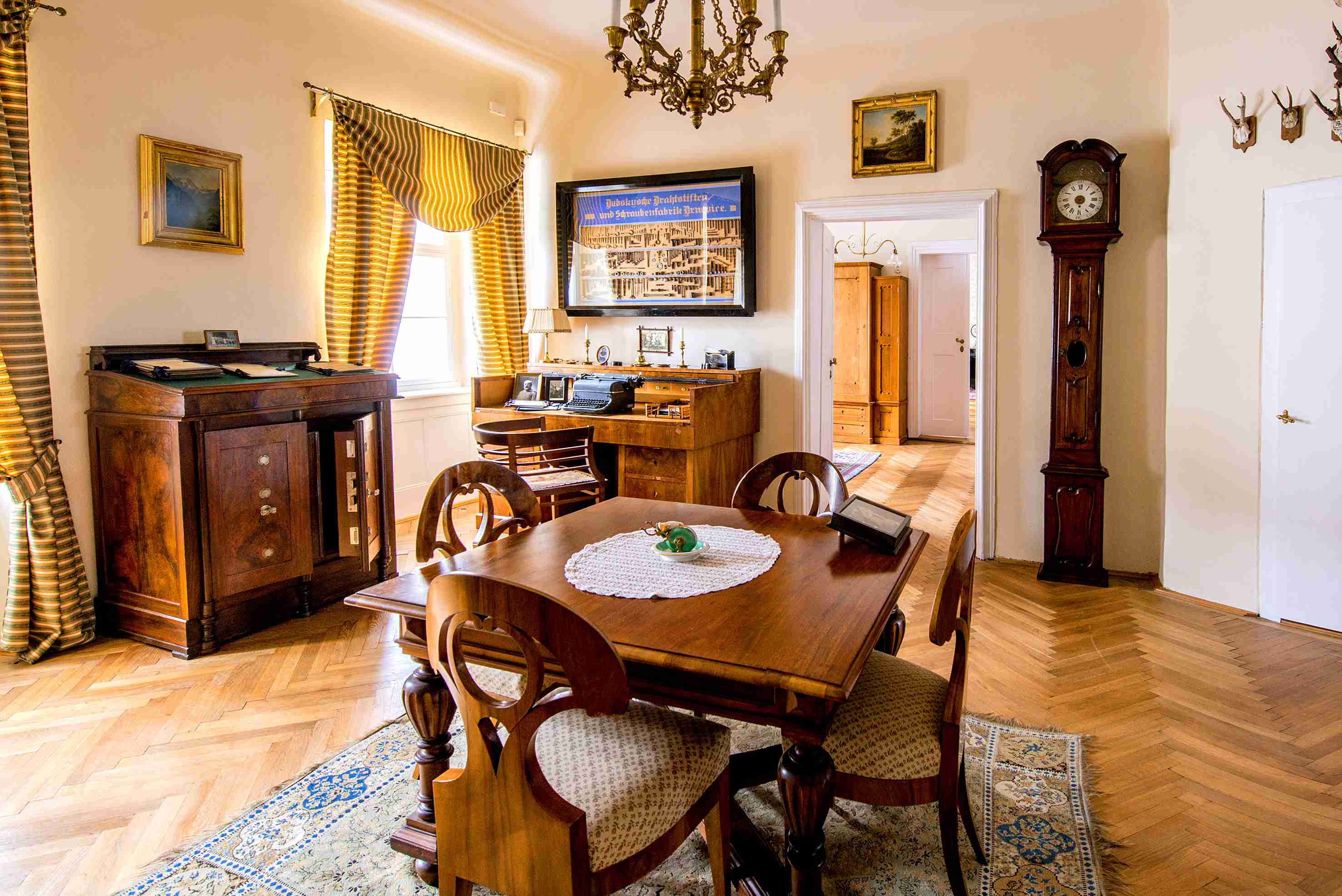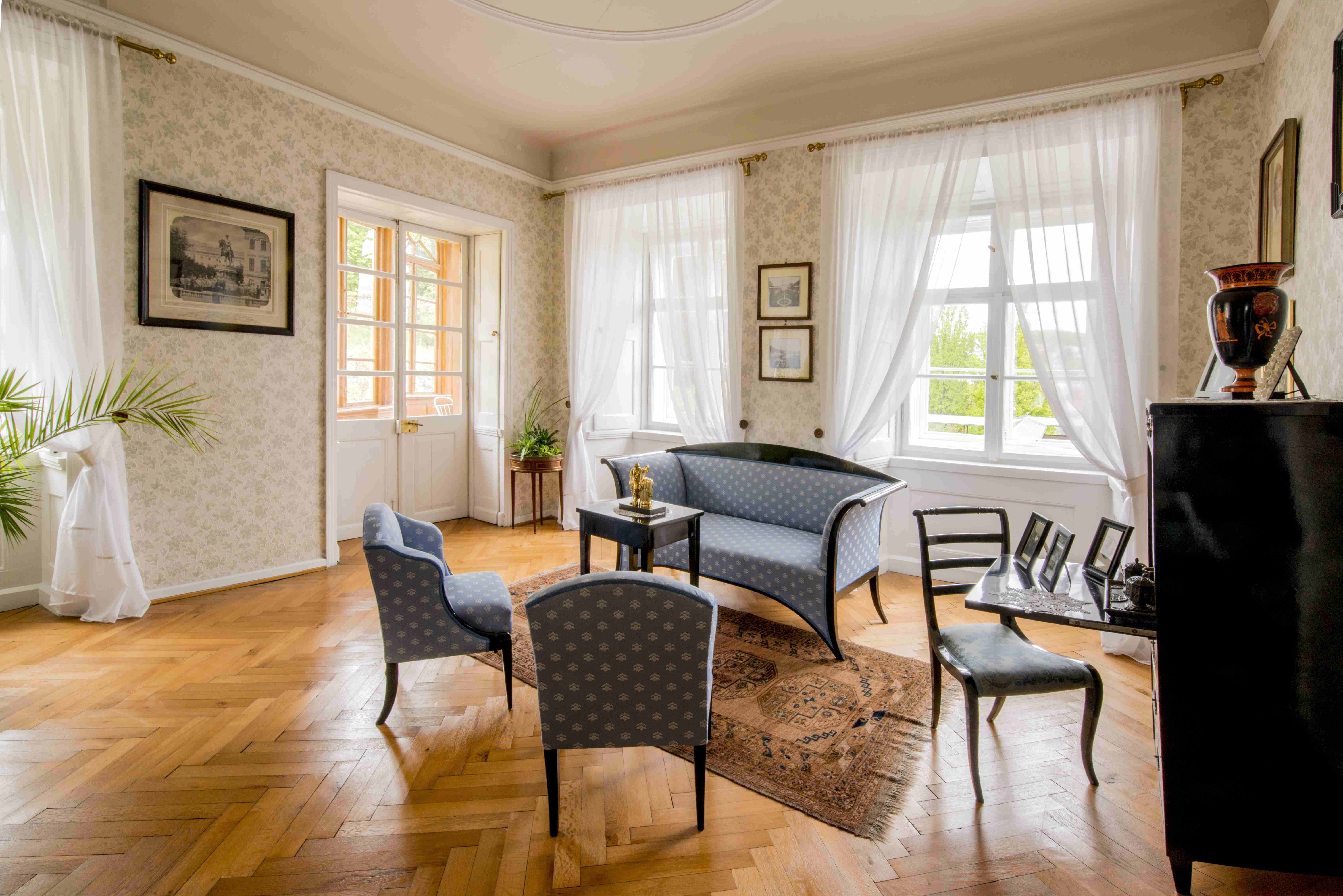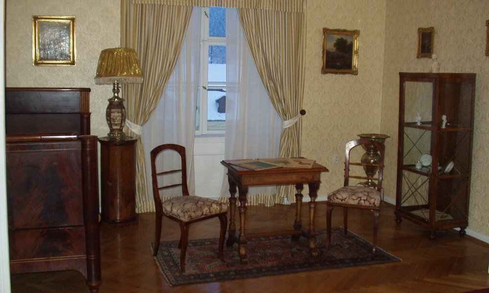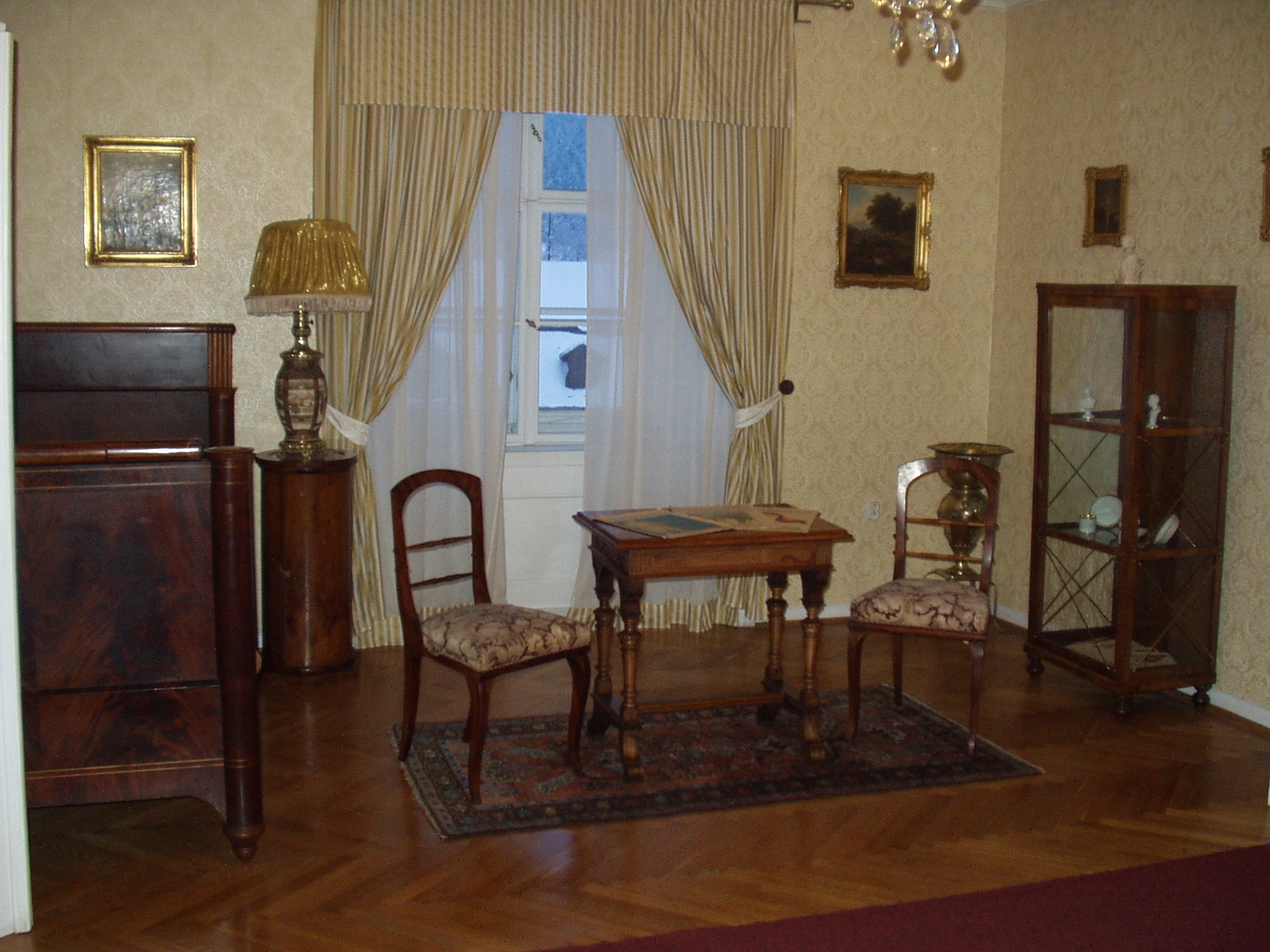 Bibliothek der Österreichischen Schriftstellerin Marie von Ebner – Eschenbach, Repräsentationsräume, Damenappartements, Waffenkammer und Bibliothek von Erwin Dubsky.