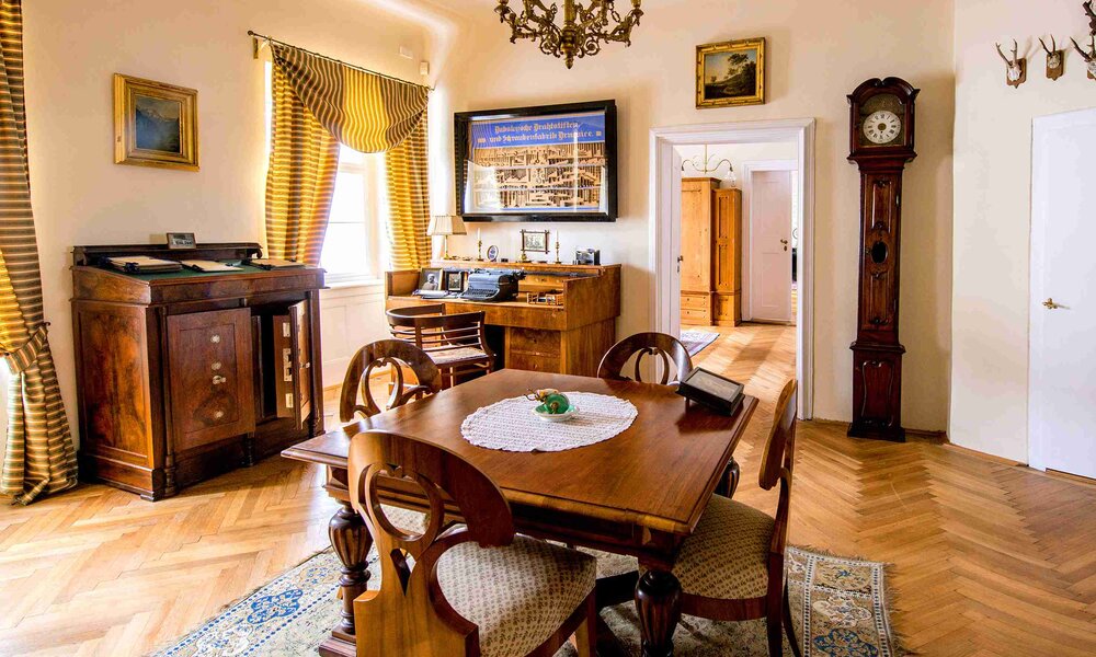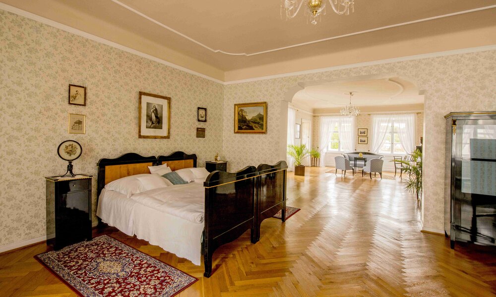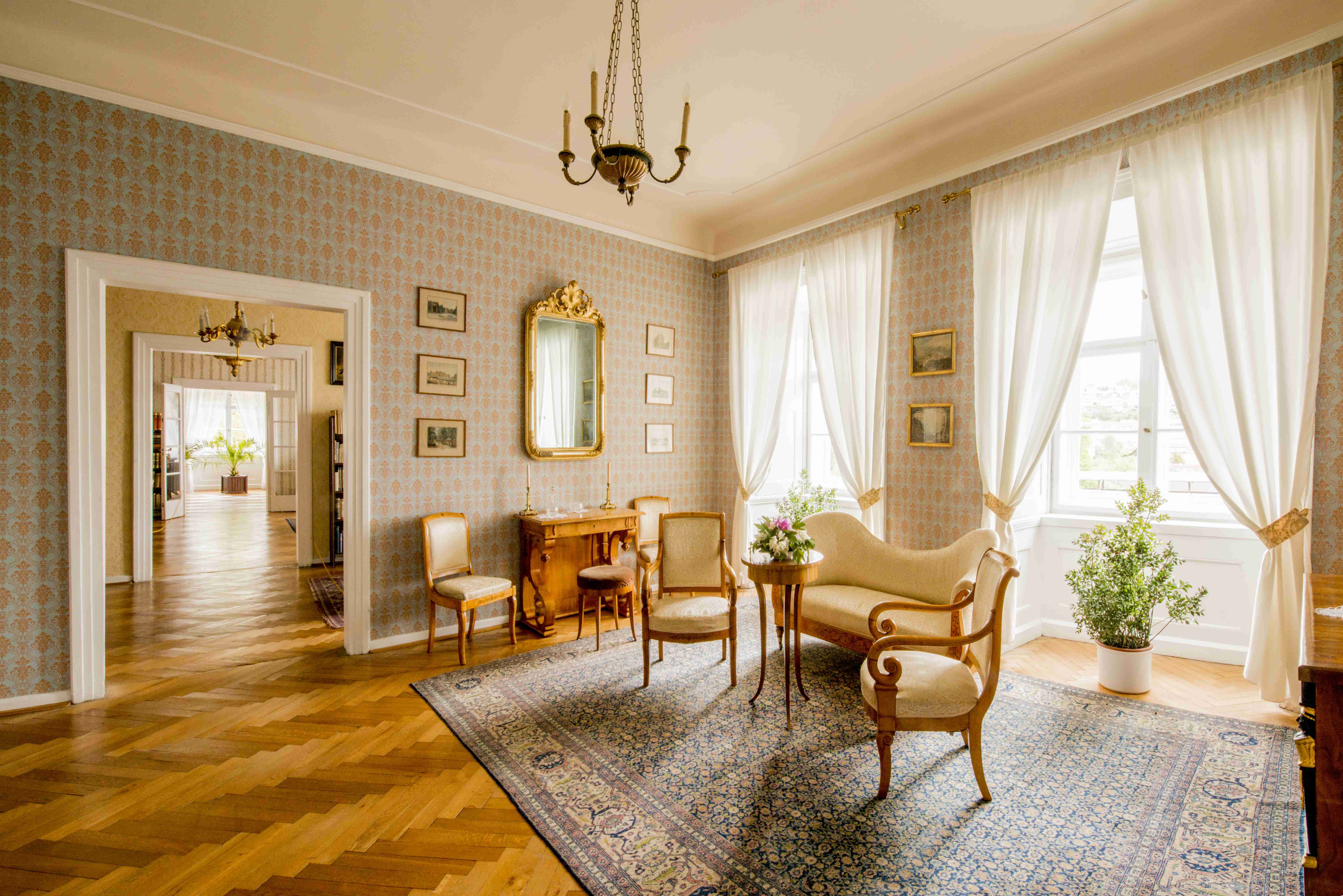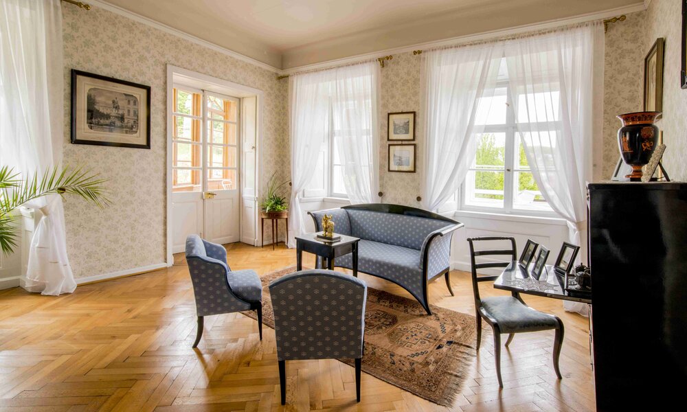 Bibliothek der Österreichischen Schriftstellerin Marie von Ebner – Eschenbach, Repräsentationsräume, Damenappartements, Waffenkammer und Bibliothek von Erwin Dubsky.