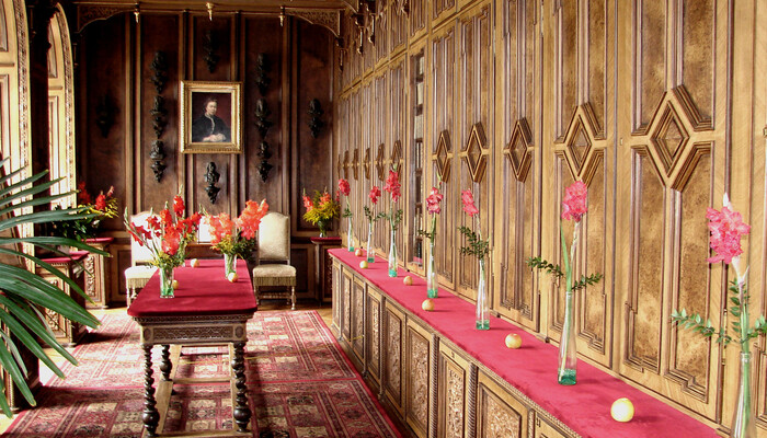 Treppenhalle im Nordflügel, Appartements des letzten adeligen Eigentümers, Gästeappartements, kleine und große Schießscheibenausstellung.